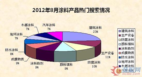 2012年8月全國涂料熱門搜索產品(數據來源:慧聰涂料網)