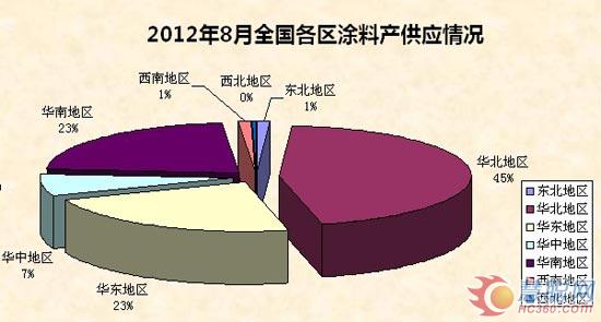 2012年8月全國各區供應情況(數據來源:慧聰涂料網)