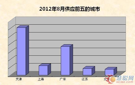 2012年8月全國各地供應前5名(數據來源:慧聰涂料網)