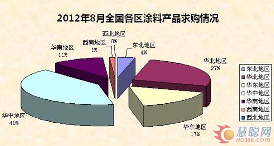 2012年8月全國各區求購情況(數據來源:慧聰涂料網)